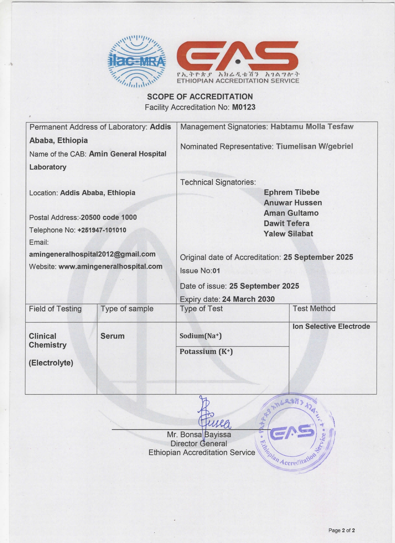 AMIN General Hospital is a health institution established in March, 2012 G.C. We have the mission to deliver timely and compassionate medical services 24 hrs.